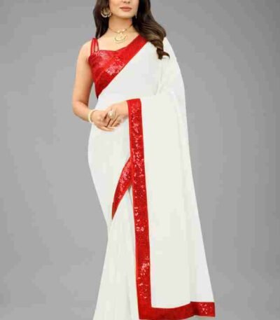 ট্রেডিশনাল কনট্রাস্ট ওয়ার্ক জর্জেট পার্টি শাড়ি